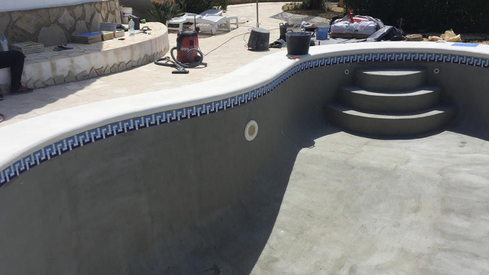 • Impermeabilización total (horizontal y vertical) con Sika Monotop S-520, ideal para piscinas